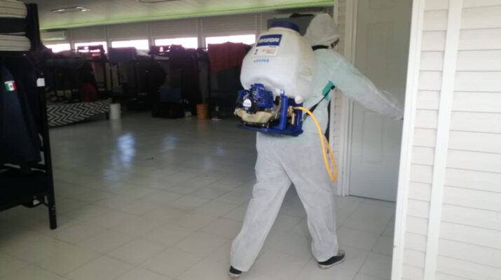 Dentro de los trabajos preventivos, se realizan trabajos de desinfección en oficinas administrativas y lugares donde se presentan mayor aglomeración de personas; asimismo, sitios de uso común como son, baños, dormitorios, consultorios médicos, y comedores.