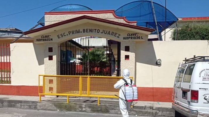 Zacapu, Mich,(Digital 3.0).-El Gobierno municipal a través de Educación y en un trabajo coordinado con Protección Civil, continúan trabajando a favor de los espacios educativos, en esta ocasión a la Primaria Benito Juárez, de esta ciudad, y en atención a solicitud de directivos quienes preocupados por las condiciones escolares solicitaron dicha sanitización, la cual fue atendida gracias a la preocupación que persiste en la actual administración.