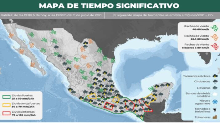 La intensidad de calor disminuirá y los intervalos de chubascos con lluvias puntuales fuertes podrían ser de 25.1 a 50.0 mm.