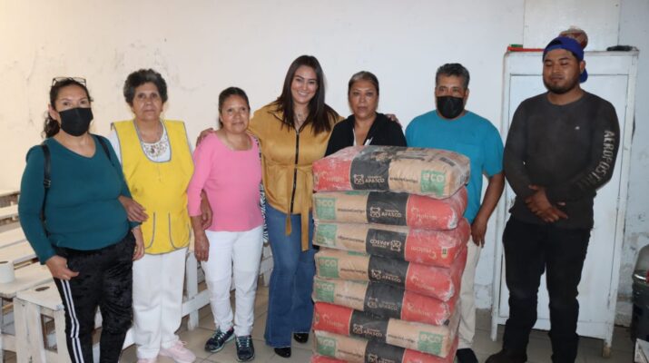 En esa dinámica de colaboración estrecha con la gente, Mónica Valdez hizo entrega de cemento a la Iglesia Templo Espiritual Centro Jesús, en el Barrio de La Zarcita, en Zacapu.