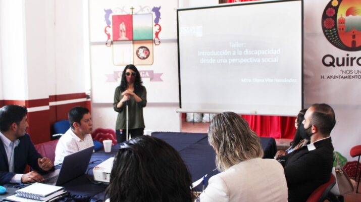 Quiroga Mich. (Digital 3.0).- El DIF Municipal a cargo de la Sra. Andrea Estrada Vázquez, presentó el Talller: Introducción a la discapacidad desde una perspectiva social, mismo que fue impartido por la Mtra. Diana Vite Hernández, en la sala de expresidente de la presidencia.