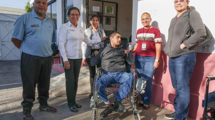 Al realizar la entrega de silla de ruedas, Estela Pulido enfatizó que junto a la directora Patricia Bravo Gutiérrez y la gestora Yareth Mares, trabajan por mejorar la calidad de vida de las personas que más lo requieren.