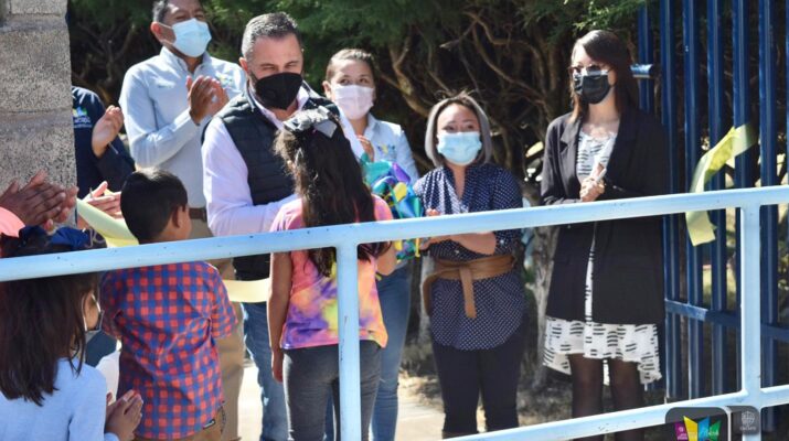 El día de ayer se llevó acabo la inauguración y entrega de obra que comprende de la construcción de barda perimetral y techado del área de usos múltiples (Cancha) del Jardín de Niños Salvador Díaz Mirón, perteneciente a la comunidad de la Cofradía.