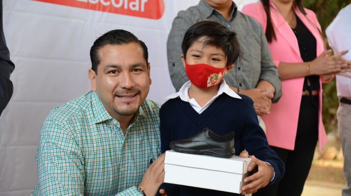 Chilchota, Mich.- Como parte del programa “Pasos por la Educación”, el presidente Miguel Ramos, concreta apoyo en la comunidad de Tacuro, con la entrega de zapato escolar.