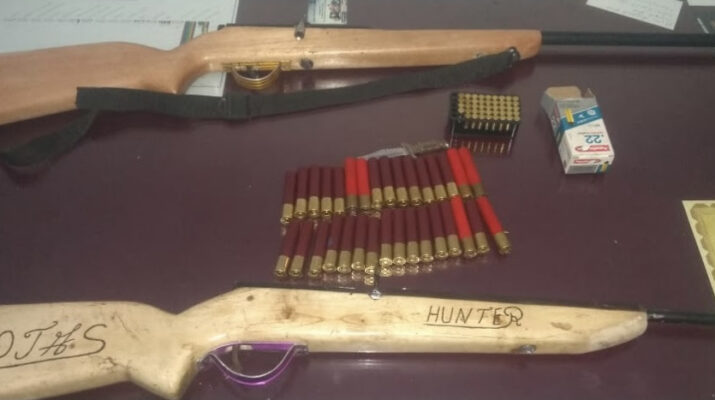 Durante patrullajes preventivos sobre la calle María Soledad de la colonia Pirules, personal de la Policía Michoacán realizó el aseguramiento de un hombre, quien se encontraba en posesión de dos armas de fuego calibres .22 mm., y .410 mm, respectivamente, así como los cartuchos útiles.