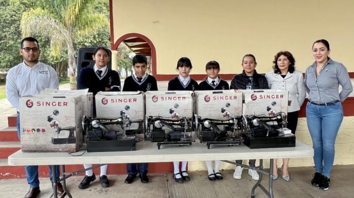 Gobierno Municipal y Sistema DIF que preside la Lic. Claudia Griselle Sanhua Pérez, esta mañana realizó la entrega de Máquinas de Cocer las cuales funcionarán para reactivar el taller de costura de la Secundaría Técnica 107 de Ajolotes.