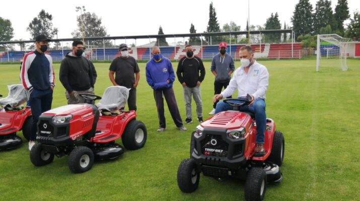 Zacapu Mich., 11 de agosto del 2022.- Con la finalidad de mantener en óptimas condiciones la cancha empastada que se encuentra ubicada en el estadio municipal, el Presidente Muncipal Luis Felipe León Balbanera, entregó tractores podadoras, con la finalidad de brindar herramientas necesarias para que la cancha estén en las mejores condiciones.