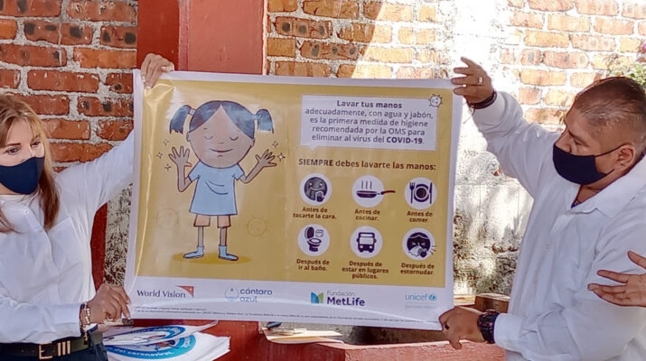 Es por ello que la UNICEF, en conjunto con ‘Cántaro Azul’, crearon la propuesta pedagógica que se ha compartido con las 40 escuelas beneficiarias de este programa, y se hizo entrega de insumos como jabones en barra, toallas de papel, depósitos para la basura y toallas sanitarias para las alumnas.