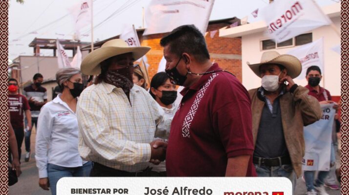 Zacapu, Michoacán (Digital 3.0).- La tarde de este domingo el candidato a la presidencia de este municipio por Morena y el Partido del Trabajo (PT), José Alfredo Pérez Ferrer recorrió a pie las comunidades de Buenavista, Morelos y Naranja, donde saludó a los vecinos de dichos lugares para escuchar sus necesidades y solicitó de manera efusiva el voto parejo por Morena el próximo 6 de junio para darle continuidad a la Cuarta Transformación.