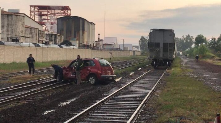 Morelia, Michoacán.- Un vehículo que intentó ganarle el paso al tren, fue embestido por la máquina del ferrocarril en un cruce en Ciudad Industrial, el conductor del automotor resultó con algunas lesiones y fue canalizado a un hospital para su atención médica.
