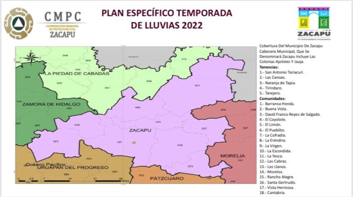 El alcalde señaló que también existen otros riesgos que pueden presentarse, como es el caso con la Pandemia por el virus SAR-COV2 y a consecuencia de las fuertes lluvias, como son: entorpecimiento de las vialidades en las avenidas secundarias de la ciudad, daños en los sistemas de comunicación y suministro de energía eléctrica generado por la caída de ramas de los árboles, problemas del sistema de drenaje, y saturación momentánea de los canales de desazolve. “Estamos considerando las laderas que principalmente se pueden ver afectadas por las lluvias en el Municipio de Zacapu así como los asentamientos en estas, entre otros. Todo esto acorde con el programa Nacional, Estatal y Municipal de Protección Civil”. Dijo León Balbanera.