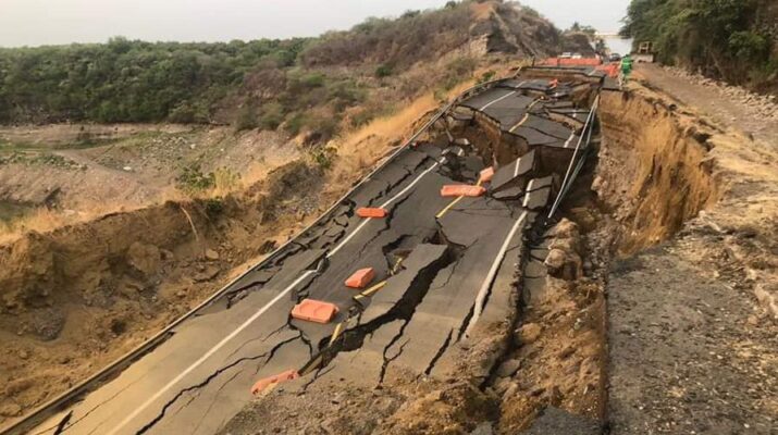 Morelia, Michoacán.- Trabajan a marcha forzada para habilitar carril alterno en tramo de la Autopista Siglo XXI de Michoacán que colapsó hace unos días.