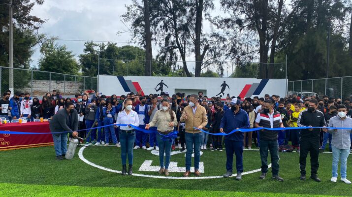 Zacapu, Michoacán., a 6 de julio del 2022.- En un esfuerzo y trabajo en conjunto, el Gobierno de Zacapu, Directivos y padres de familia de la Escuela Secundaria Federal Melchor Ocampo ESMO de esta localidad, inauguraron el día de hoy la rehabilitación de la cancha de fútbol rápido de la institución educativa.
