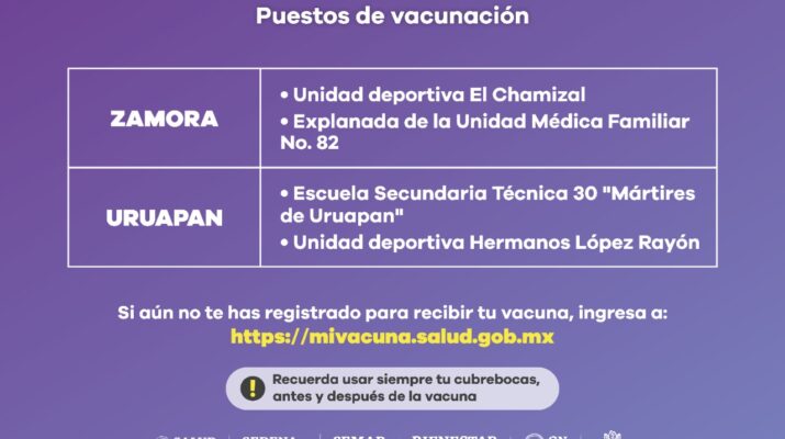 En Zamora los módulos de vacunación se encontrarán en la Unidad deportiva El Chamizal y en la explanada de la Unidad Médica Familiar No. 82.