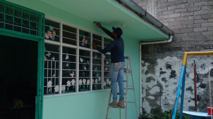 Los trabajos de rehabilitación de pintura en el Jardín de Niños «Julieta Fierro», brindarán un entorno más agradable y adecuado para los estudiantes, docentes y personal administrativo.