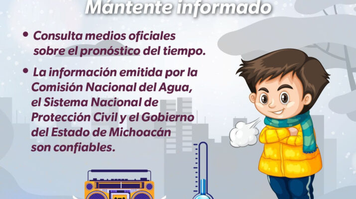 Morelia, Michoacán, (Digital 3.0).- La Secretaría de Gobierno a través de la Coordinación Estatal de Protección Civil exhorta a la población a mantenerse informada sobre las condiciones meteorológicas ante la temporada invernal.