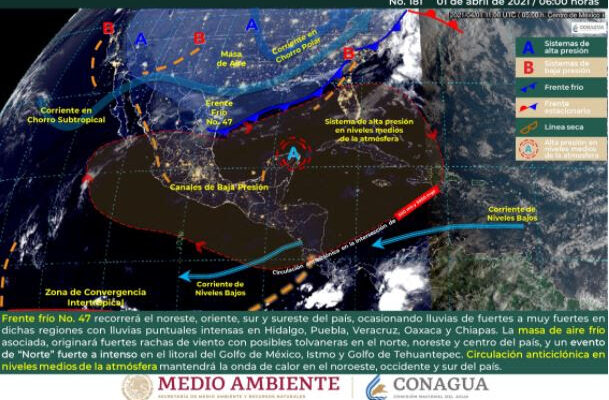 Las condiciones metereológicas que se pronostican de acuerdo al Servicio Meteorológico Nacional (SMN), es cielo medio nublado la mayor parte del día y sin lluvias y ambiente caluroso a muy caluroso por la tarde, en algunas regiones se esperan temperaturas máximas de 40 a 45 °C.