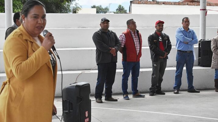 Cortijo Nuevo. Con el propósito de tener mejores espacios donde nuestros jóvenes realicen deporte, el día de hoy la presidenta municipal, Marcela Velázquez Vázquez hizo entrega de gradas de la cancha de la Colonia E. Zapata y Cortijo Nuevo.