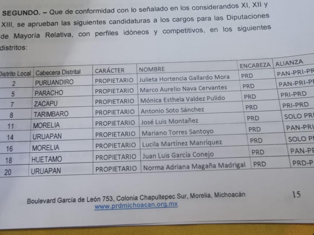 Morelia Mich. (Digital 3.0).- Este domingo fueron aprobadas en el Consejo Estatal las candidaturas a Diputados Locales de Mayoría Relativa, donde destacan distintos perfiles por parte del Partido de la Revolución Democrática (PRD).