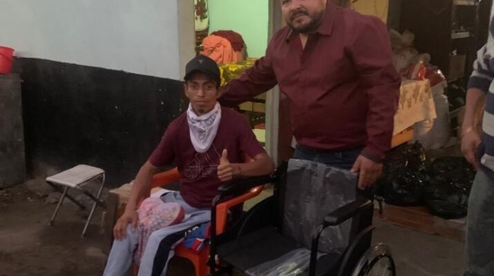 El joven José Jesús de la comunidad de Las Colonias fue el primer beneficiado con una nueva silla de ruedas que apoyará mucho su movilidad.