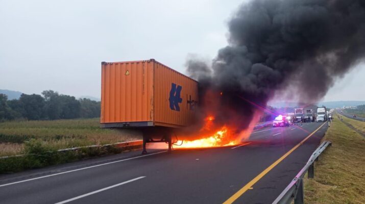 Arde contenedor de tractocamión en la Autopista México-Guadalajara