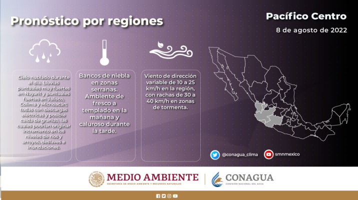 Morelia, Michoacán, 8 de agosto de 2022.- La Secretaría de Gobierno a través de la Coordinación Estatal de Protección Civil exhorta a la población a tomar medidas preventivas y de autocuidado ante la probabilidad de lluvias fuertes en gran parte del estado de Michoacán.