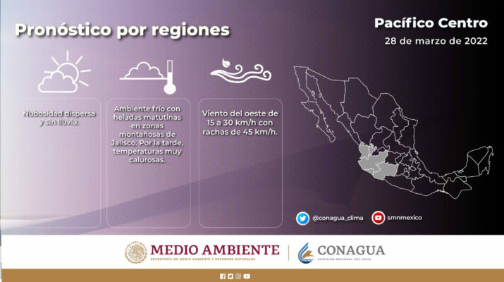 Y es que, según el pronóstico del Servicio Meteorológico Nacional, las temperaturas para este día, podrían superar los 40 grados principalmente en zonas de la Tierra Caliente y Costa del Estado, mientras que para la capital se estima que el termómetro alcance los 30 grados Celsius.