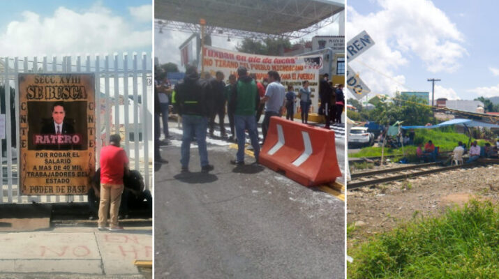 Agregar que en las protestas Poder de Base se han colocado mantas donde acusan al gobernador de “ratero” por no pagar los salarios a los trabajadores al servicio del estado.