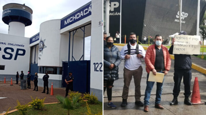 Morelia, Michoacán (Digital 3.0).- Un grupo de policías estatales de esta ciudad se manifestaron esta mañana en las instalaciones de la Secretaría de Seguridad Pública SSP para exigir el pagos de sus prestaciones que por ley, tienen derecho, pero fueron sacados a la calle por instrucciones del titular de la dependencia, Israel Patrón Reyes.