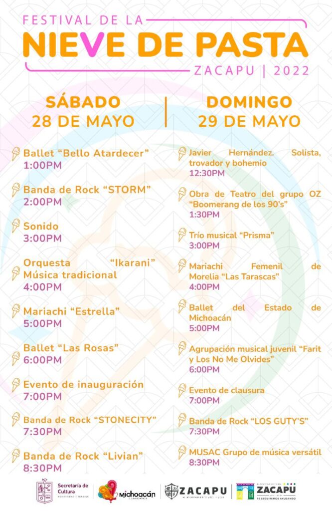 Zacapu, Mich., a 23 de Mayo de 2022.- El Gobierno Municipal que preside Luis Felipe León Balbanera, presentó de manera oficial la 5ª edición del Festival de la Nieve de Pasta, un evento gratuito en el que participan 13 productores de la región, que elaboran este tradicional postre de manera artesanal, el cual se llevara a cabo el próximo fin de semana 28 y 29, en la Plaza Reforma a partir de las 12:00 pm.