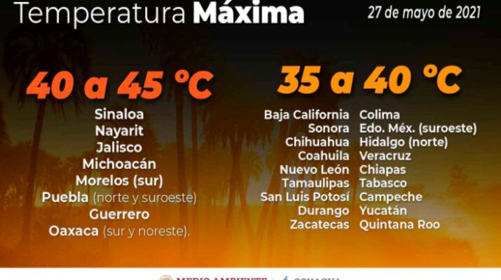 De acuerdo con el Servicio Meteorológico Nacional, prevalecerá el ambiente cálido y en zonas costeras se esperan temperaturas arriba de los 40 grados Celsius, por otro lado existirá incremento de nubosidad y se pronostican lluvias aisladas.