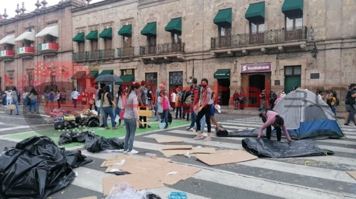 El grupo encabezado por Gamaliel Guzmán Cruz comenzó con la remoción de las casas de campaña y mampostería de la avenida principal de Morelia.