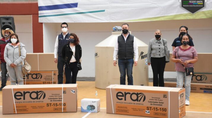 Durante un evento realizado en el municipio de Zacapu, con estricto apego a las medidas sanitarias establecidas por las autoridades de salud, se hizo la entrega de 75 tinacos, 102 calentadores solares y 625 láminas, con un valor de 1,121, 360 pesos, cuya aportación se llevó a cabo por la Congregación Mariana Trinitaria y el municipio, con el respaldo en la generación de expedientes por parte de la Semigrante.