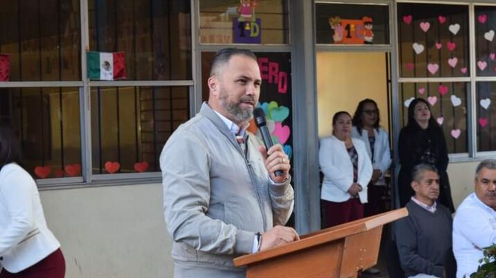 El alcalde, Luis Felipe León Balbanera, fue recibido afectuosamente por el alumnado de la escuela primaria y aprovechó la ocasión para hacer entrega del equipo deportivo que había prometido anteriormente.