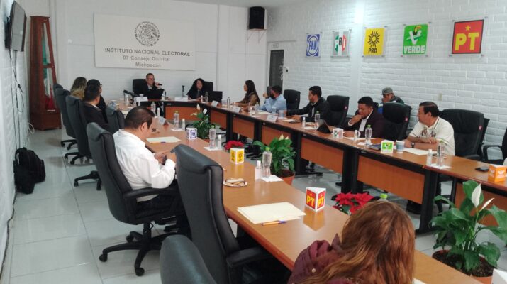 En cumplimiento a lo dispuesto en los artículos 12, párrafo 1; 14, párrafos 1 y 2; y 76, párrafo 1, de la Ley General de Instituciones y Procedimientos Electorales, este día 1 de diciembre de 2023 a las 11:00 horas, fue legalmente instalado el 07 Consejo Distrital del Instituto Nacional Electoral en el estado de Michoacán, acto con que dieron inicio las actividades del Proceso Electoral 2023-2024 en el distrito electoral federal 07 y en el cual se celebrarán elecciones concurrentes para la Presidencia de de la República, 128 senadurías y 500 diputaciones a nivel Federal, así como 40 diputaciones locales y 112 Ayuntamientos a nivel local. Este órgano electoral colegiado, a la fecha, se conforma de la siguiente manera: