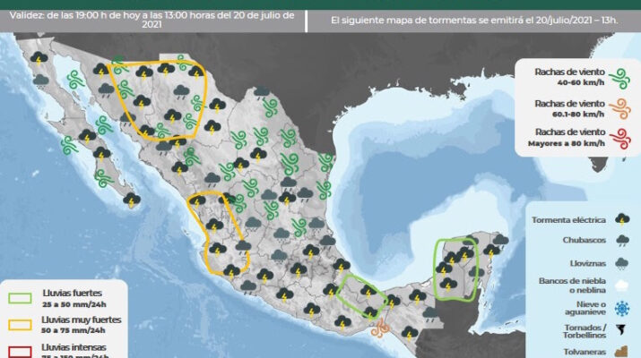 Ya que de acuerdo con el Servicio Meteorológico Nacional (SMN) un canal de baja presión provocará cielo nublado con lluvias fuertes todas con descargas eléctricas y posible caída de granizo.