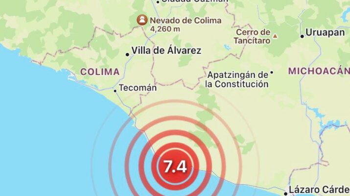 De acuerdo al reporte del Sismológico Nacional, el movimiento telúrico de hoy fue de 7.4 grados con epicentro a 58 kilómetros al sur del municipio de Coalcomán y con 10 kilómetros de profundidad