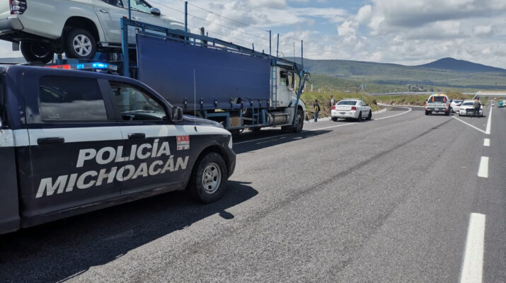 El hecho se registró este día en la localidad de San Antonio Carupo, ubicada en este municipio de Penjamillo, lugar donde se logró recuperar la nodriza, la cual es de la marca Freightliner, ésta transportaba seis camionetas y un automóvil de la marca Mitsubishi, que al ser revisados sus antecedentes vehiculares, los agentes confirmaron que las unidades habían sido robadas momentos antes.