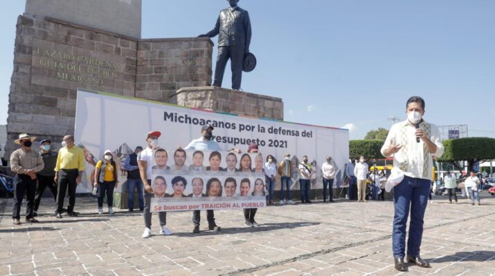 Al acudir a la protesta pacífica y responsable que se realizó en la ciudad de Morelia, al pie del Obelisco a Lázaro Cárdenas, fustigó el actuar del Gobierno Federal y de la mayoría en la Cámara de Diputados, al recortar el presupuesto a estados, y que en el caso de Michoacán asciende a los 7 mil 900 millones de pesos.