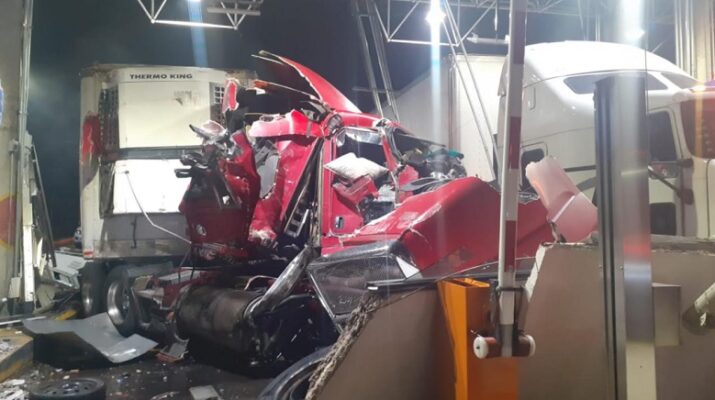Trascendió que el camión accidentado, es uno con cabina de color rojo y caja blanca, mismo que aparentemente sufrió una falla y terminó por embestir el quiosco de cobro, ocasionando múltiples daños, ya que tanto la caseta como el tráiler terminaron destrozados.
