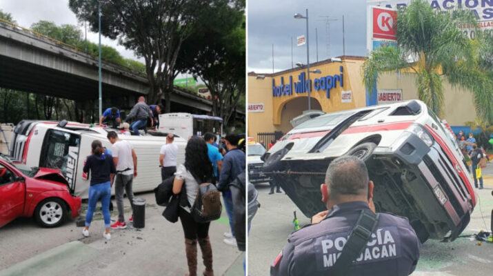 En la esquina de Madero y Puente de Calderón, la unidad con número 69 al parecer fue impactada por un carro marca Ford color rojo, a consecuencia del impacto la camioneta terminó volcada.
