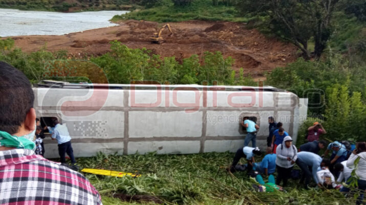 El accidente se registró la tarde de este lunes, según lo dio a conocer personal paramédico de Protección Civil Municipal, quienes acudieron al lugar de la volcadura, y junto con elementos de Cruz Roja, atendieron y trasladaron a un hospital, a nueve personas.
