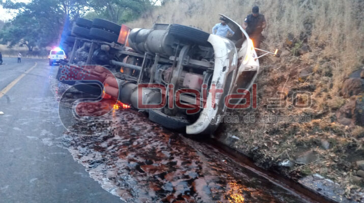 Se trató de una pipa, que al volcar derramó combustible por lo que la carretera se vio afectada en el tramo cerca del entronque con Matugeo. De acuerdo al reporte preliminar fueron 3 los lesionados, 2 menores y un adulto.